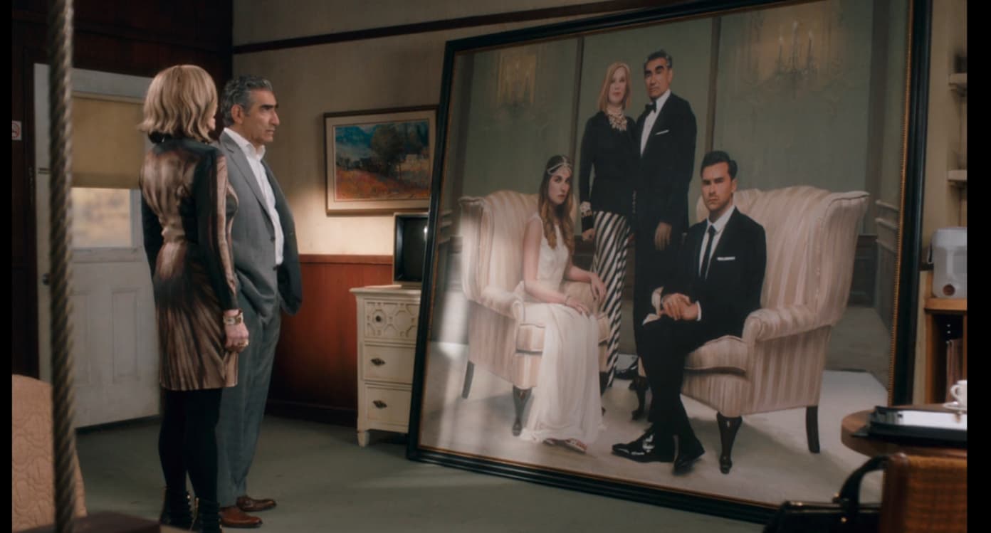 Image Credit: ITV Studios Global Entertainment The “Schitt’s Creek” cast and crew returned to La Belle Maison to film some flashback scenes for season four’s “Merry Christmas, Johnny Rose.” It is in one of the family rooms that Moira and David (Dan Levy) famously treat their friends to a rousing rendition of “Silent Night” in the episode.
